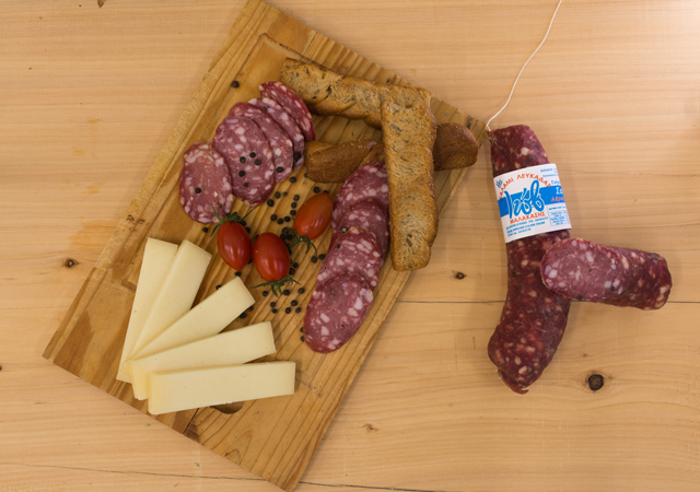 Salami Lefkados is a unique product, produced on our island at least for the past three centuries. It is said that, in Lefkada, during the Venetian occupation, connoisseurs of this particular product’s production arrived on the island, on a fee basis, in order to teach their art to the local people. The production process of the original salami Lefkados is an art known and applied by very few and in combination with the excellent quality ingredients and the island’s climate, this special product can be produced exclusively in Lefkada.